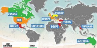 Map Shows the Dangerous and Safest Countries to Travel around the...