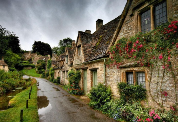 Bibury is a village and civil parish in Gloucestershire, England. It is on both banks of the River Coln which rises in the same (Cotswold)District and which is a Thames tributary. Arlington Row here is a nationally notable architectural conservation area depicted on the inside cover of all UK.
