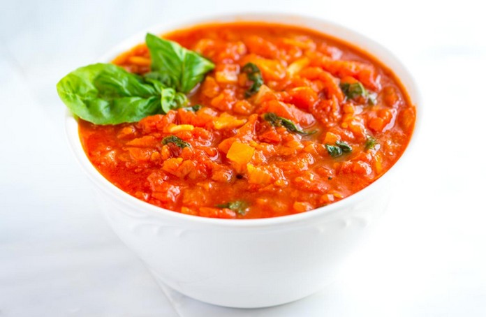 Marinara is a red sauce consisting of olive oil, garlic, tomatoes, and herbs. Onions might sometimes get added to the combination of these ingredients, and marinara might be transformed into another sauce.