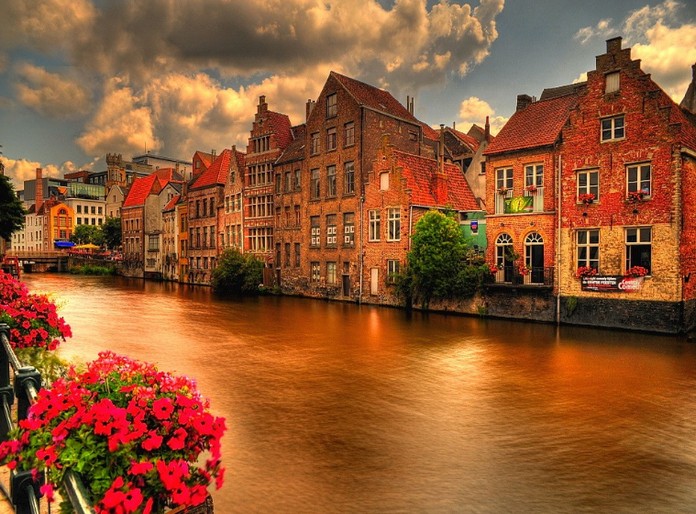 The medieval city of Bruges becomes even more beautiful in the winter when the gold and crimson vines cover the historic buildings with the rich autumnal hues.