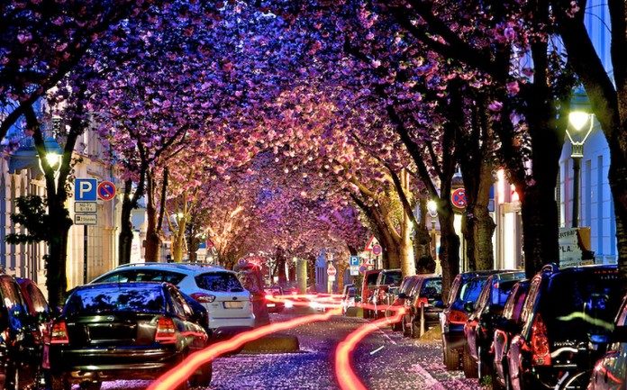 For 11 months of the year, Bonn’s Heerstraße is a regular —albeit attractive — thoroughfare running through the city’s arty Altstadt neighborhood,but during April, the Heerstraße is transformed by beautiful, flowering cherry blossoms that form a dreamy pink canopy over the street.