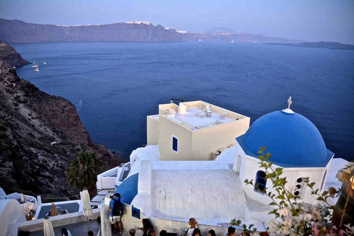 The cliffside site provides stunning panoramas of the caldera and Santorini’s whitewashed buildings and azure-domed churches.