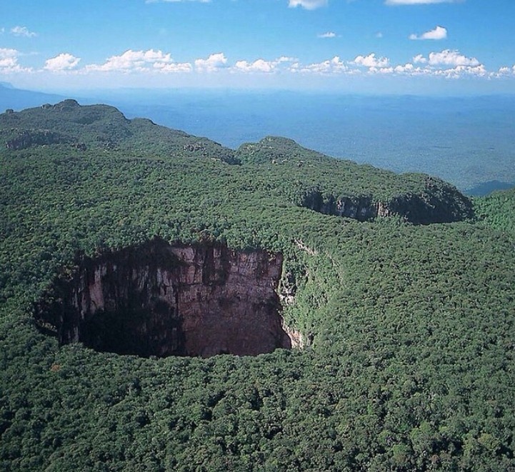 There are many tepuis located within the territory of Venezuela. Hundreds of years ago enormous sinkholes were formed in them. The biggest ones are located on Mount Sarisariñama in the Venezuelan state of Bolívar.