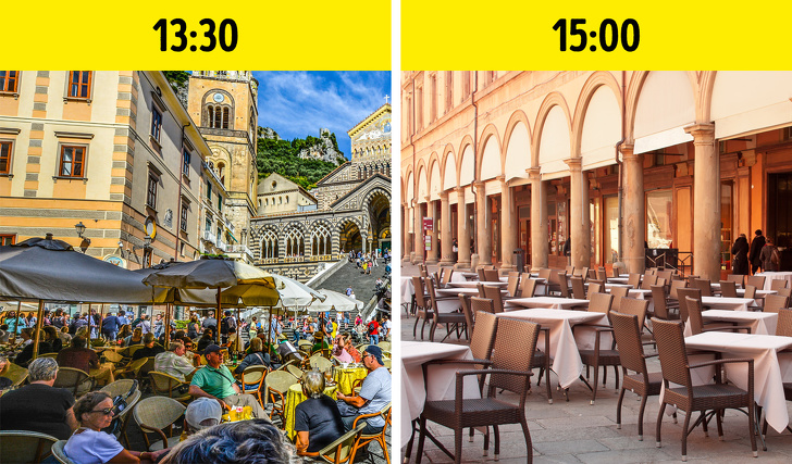 Italians are quite diligent about many things, and one of them is food. Many of them have special food timetable. Breakfast begins at 11 a.m. and usually consists of a cup of cappuccino and a croissant. Lunch It lasts from 12 p.m. to 2 p.m. After that, from 6 p.m. to 8 p.m. is time for an evening aperitif. Dinner begins at 7 p.m. and can last until midnight.