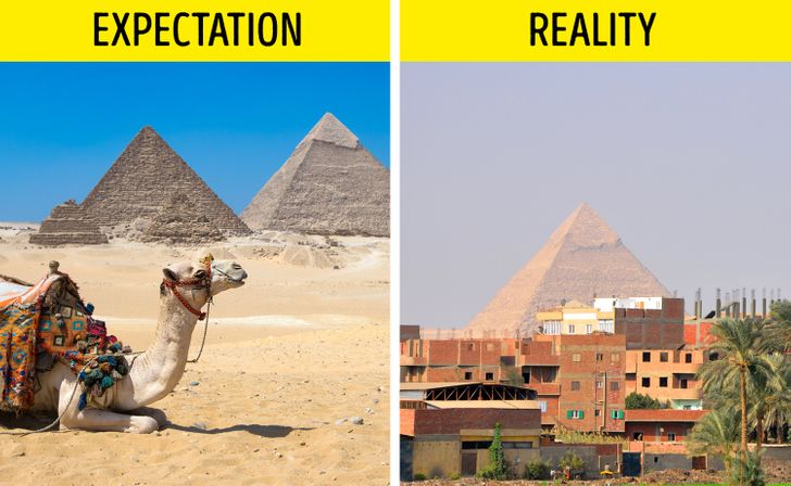 When we hear “Egyptian pyramids” we imagine a vast desert, the scorching sun, camels, and other Egyptian attributes.  We can hardly imagine that these masterpieces are extremely close to a city but the truth is the pyramids are located on the outskirts of Cairo.