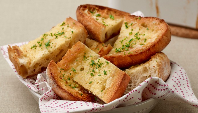 Garlic bread found in the US is the replica of bruschetta. Italians frequently toast fresh bread by the fire and rub a garlic glove and add a drizzle of olive oil.