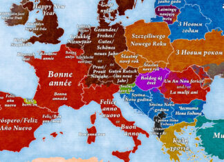 Learn how to wish a "Happy New Year" in German, French, Spanish, Italian and other languages with my neatly coloured map!