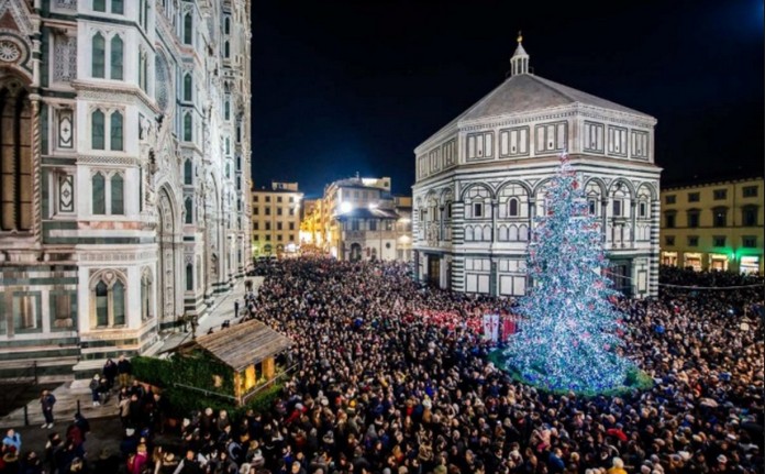 Every 8th December, Christmas lights illuminate Florence and a big tree is placed in the Piazza Duomo next to Cathedral of Santa Maria del Fiore. Moreover, for an entire month, on occasion of the F-Light Florence Light Festival, new amazing lights brighten Florence downtown.If you are lucky to be in the capital of Tuscany during this period, you have the opportunity to admire the main attractions of the city under a different light. Since 2011, in December, light games and projections color the facades of the historical buildings, giving them a special and amazing aspect. F-light is a wordplay. The letter “F” (for Florence but also for festival) and the word “light”, create the new word “F-light”.For a month, the Light Festival invites Florentines and tourists to take a tour with the light, an imaginary flight over the city, closer to the starry vault.