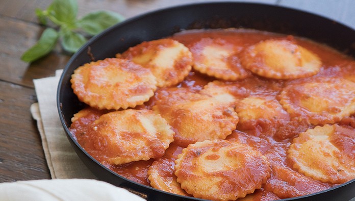 Splash of olive oil – Grated Parmesan cheese for serving – Torn fresh basil leaves