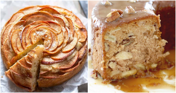 The main ingredients are few and simple: flour, sugar, eggs, milk, butter (or oil), baking powder and vanilla. And apples, sliced or diced.Recipe: