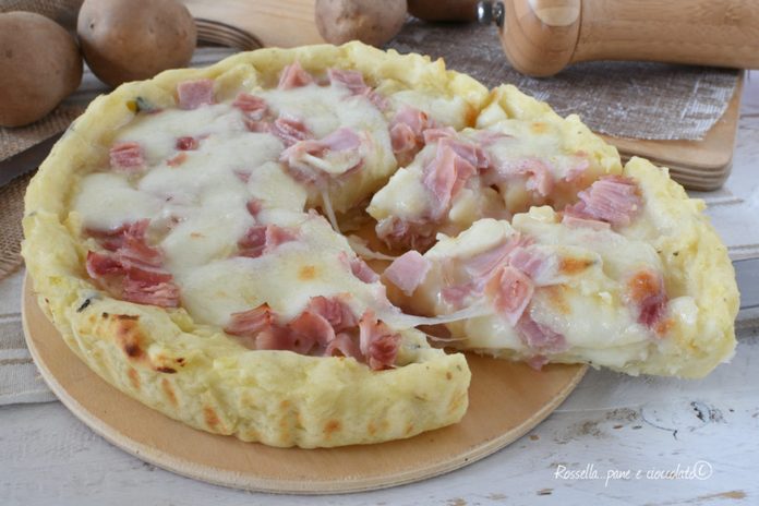 Using a dough cutter with a diameter of about 10 cm, assemble the pies directly onto a baking tray covered with baking paper. Create the 1st layer with the potato mixture and then add layers on top, in the following order: a slice of cooked ham, a slice of mozzarella, and then another slice of ham.