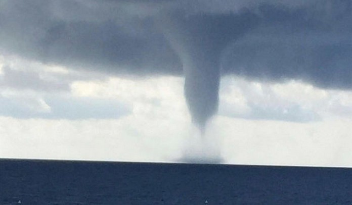 A RAPIDLY growing tornado has been pictured tearing its way towards a blissful Italian island amid a severe double weather warning.Alarming pictures captured the moment a swirling waterspout sucked up water as it ripped through the Tyrrhenian Sea this morning. Holidaymakers relaxing in Ventotene, a tiny volcanic isle far out in the Tyrrhenian Sea west of Naples, were struck by the imposing site as the twister whipped up thick, black cloud hundreds of feet above the water.A usually picturesque view was swapped for the dramatic whirlwind as it plunged towards the sea and gathered pace.The phenomenon was caught on camera heading towards Ventotene, from the western side, overlooking the nearby island of Ponza in Central Italy.Luckily, the tornado did not hit the island but continued ploughing passed Santo Stefano, losing power as it made its way towards the island the Ischia.