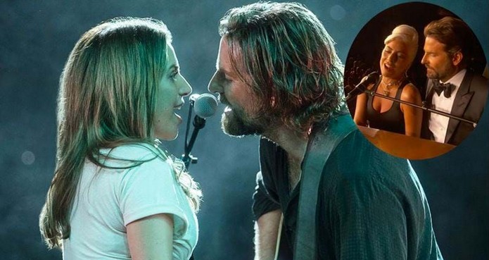 “So a really good friend of mine… I don’t know if you know him but his name is Bradley. He made that movie, umm, A Star Is Born,” Gaga told the audience as the “Shallow” chords played. “So I’m gonna be a little chance-y… Yo Bradley, you wanna come up and do this one?”With prodding from the enthusiastic crowd, a somewhat reluctant Cooper joined Gaga at her piano and, after some in-ear monitor problems – “Jackson Maine would never wear these,” he quipped of his Star Is Born character – seamlessly launched into “Shallow” as Gaga sat by his knees.