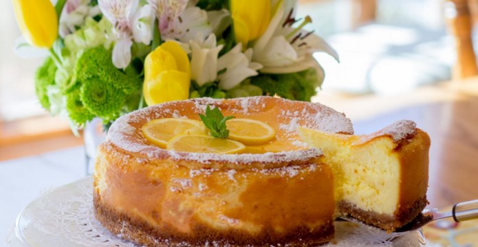 Lemon Ricotta Cheesecake isΒ  one of my most requested recipes. It is refreshing and light, yet dense and creamy and yummy at the same time.Β  Grab a girlfriend and cup of coffee and gab away over this Lemon Ricotta Cheesecake.Lemon Ricotta Cheesecake is easy to make. The graham cracker crust is pre-baked in a springform pan.Β  The rest ingredients are mixed until smooth, then poured over the cooled crust. Bake for 90 minutes and let set in the fridge overnight.