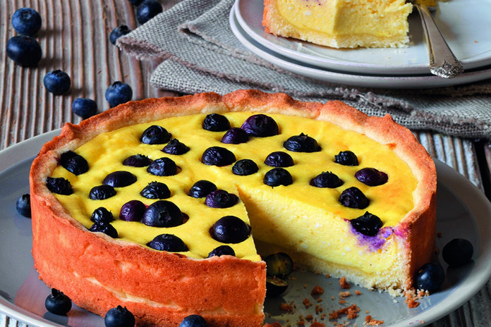 Pour the ricotta mixture into this shell, scatter a few blueberries on the surface and bake at 300°F – 320°F for about 1 hour.