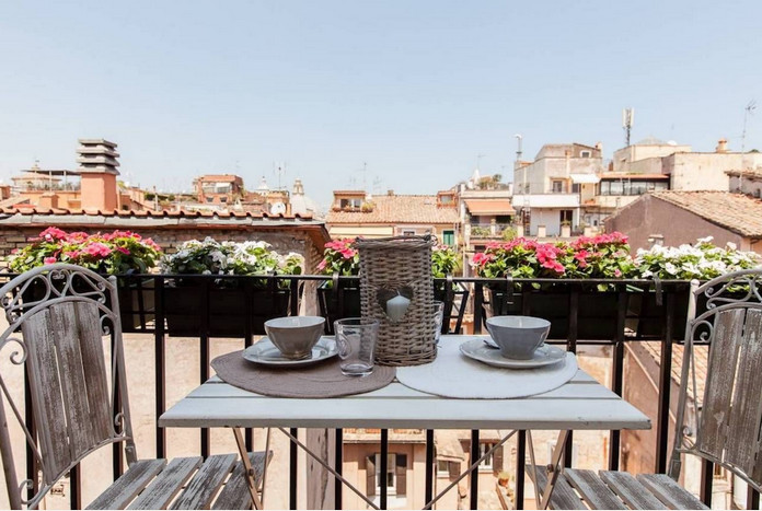 This flat is like that Neil Diamond song, “Up on the Roof,” only better because you’re in Rome.From your rooftop perch, you’ll overlook the dramatic landscape of the city. It’s right in the heart of Rome and near the Spanish Steps.