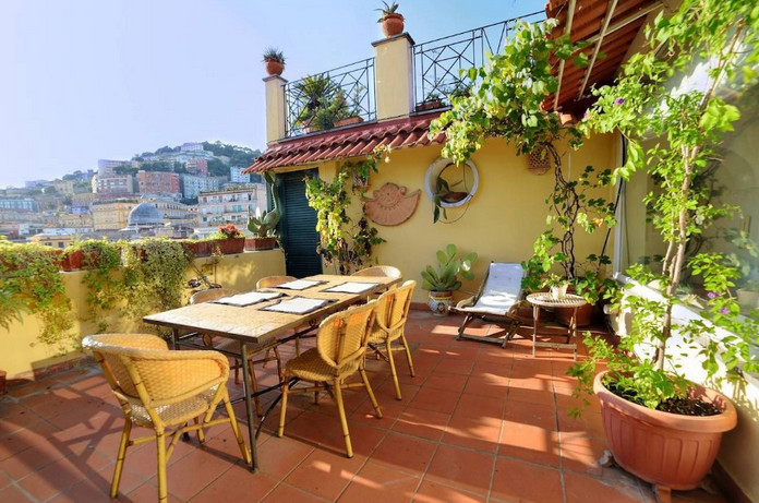 This loft, and its accompanying view of Naples, are worth a trip to Italy in and of themselves. It’s big enough that the cool breeze of the coast whistles through the apartment while offering the seclusion of a walled-off terrace.
