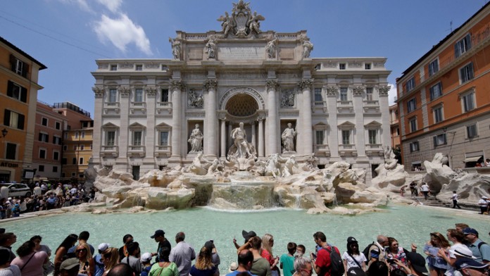 The Trevi Fountain (Fontana di Trevi) is set at the end of the restored Aqua Virgo aqueduct, which dates back to ancient Rome.Water cascades from spigots in several different places, and the palace behind the fountain was redesigned to include majestic columns and statues befitting the fountain below.
