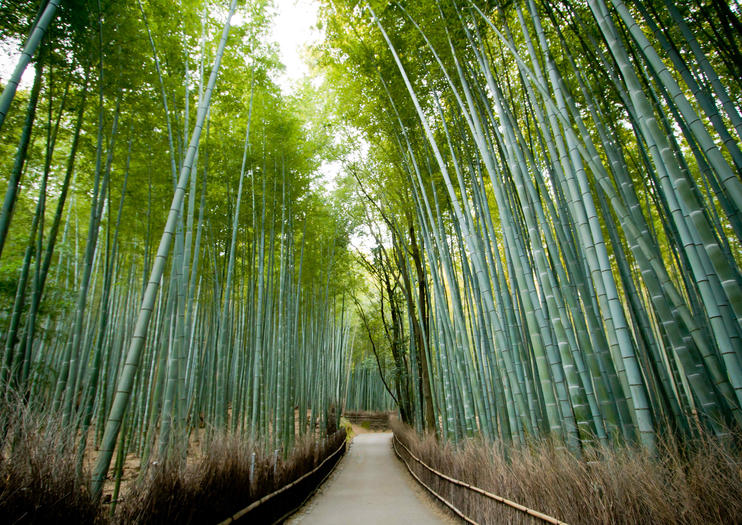 In Arashiyama, Japan there is a bamboo forest called Sagano. The 500 m long path runs through the most beautiful bamboo forest.
