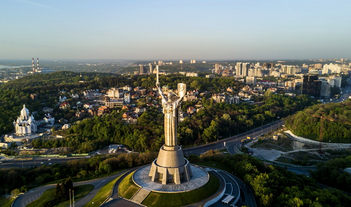 Located in Kyiv, the Rodina Mat statue is modeled after a symbol made during World War II to mobilize the Soviet people. The stainless steel statue was finished in 1981 and stands 62 meters (203 ft) tall.
