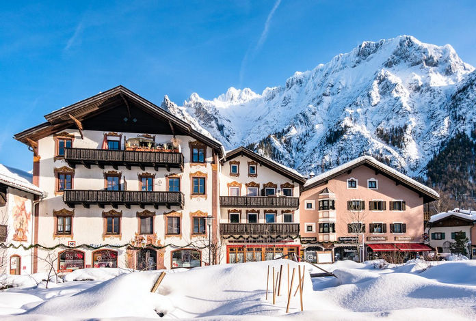 No Bavarian mountain town is more classically Bavarian than Mittenwald. Downtown, the Obermarkt district fills with snow and revelers who stroll between the famed St. Peter and Paul Church and chalets, restaurants, and pubs.