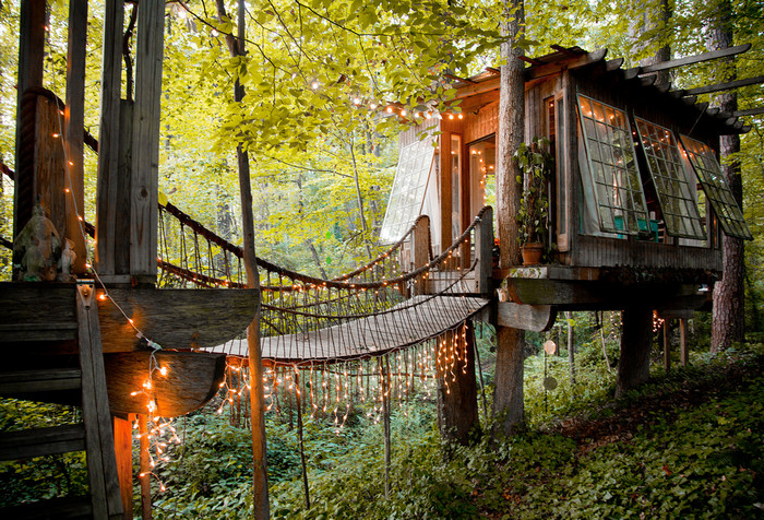 Nestled amongst the trees and just minutes from downtown Atlanta, this treehouse provides an intimate ambiance where you can fall asleep to the sound of nature. Individual treehouses are separated by rope bridges and feature beds with Egyptian cotton sheets and wheels so you can roll them outside onto a platform.