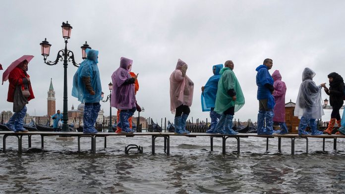 Venice was on red alert for more floods and fierce winds on Saturday after an exceptionally high tide swamped the city of canals, and declared a state of emergency.Mayor Luigi Brugnaro ordered the iconic St Mark’s Square closed on Friday as the latest sea surge struck with strong storms and winds battering the region. It reached a high of 1.54 meters — lower than Tuesday’s peak but still dangerous. “I’m forced to close the square to avoid health risks for citizens… a disaster,”.