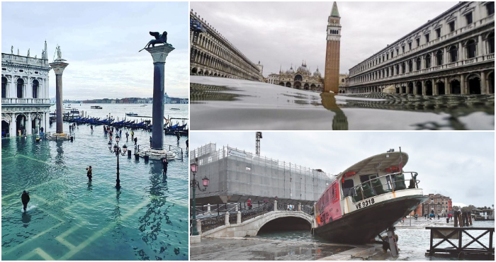 Water taxis attempting to drop people off at the glamorous and historic hotels along the Grand Canal discovered the gangways had been washed away, and had to help passengers clamber through windows.