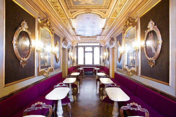 Caffè Florian, the world’s oldest Caffe, celebrates its 300th anniversary. The landmark Venetian bar, nestled amid the arcades of the central Piazza S. Marco, has been serving locals and visitors to the lagoon city for 3 centuries.Opened on 29 December 1720, Alla Venezia Trionfante – as it was called originally – was launched by Floriano Francesconi, after whom it was soon renamed.
