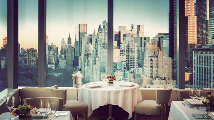 The 16-foot-high windows in this Mandarin Oriental Hotel’s restaurant, Asiate, offer views of Midtown Manhattan’s sleek vertical marvels and the..…leafy urban oasis of Central Park. From the elegant 35th-floor dining room, the buzz of the city recedes, leaving a glittering metropolis.